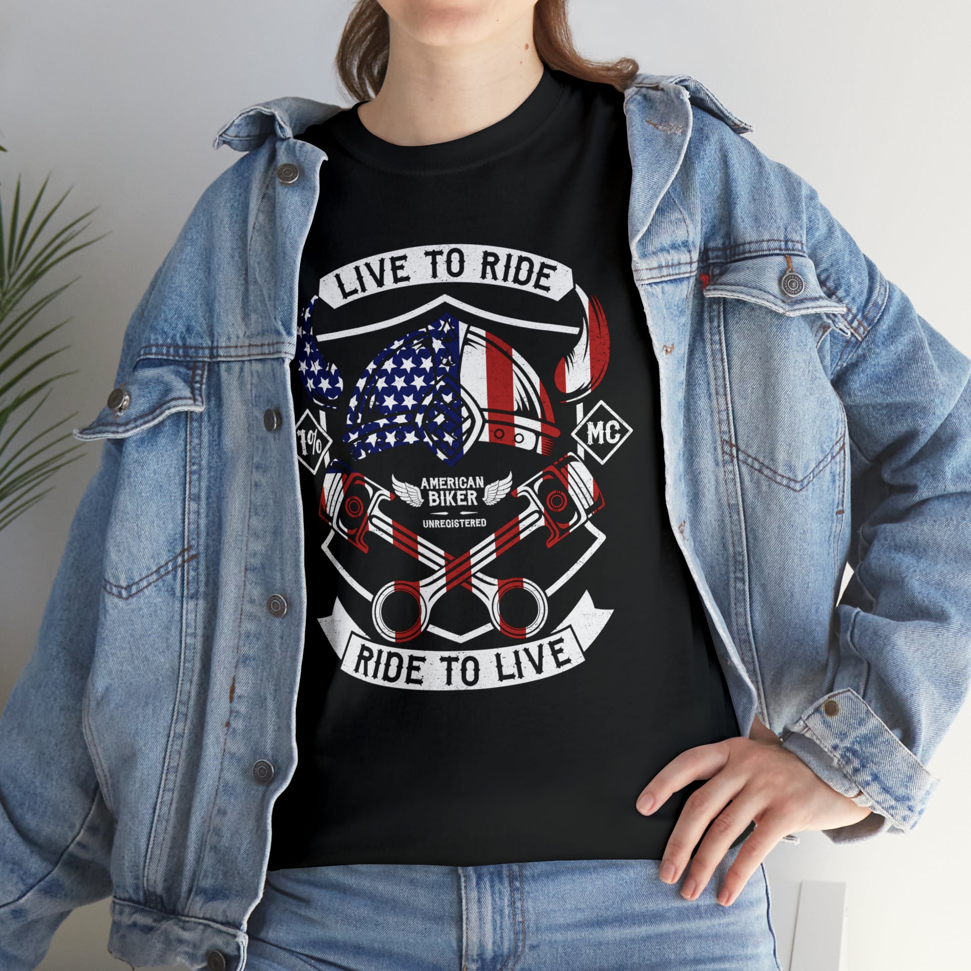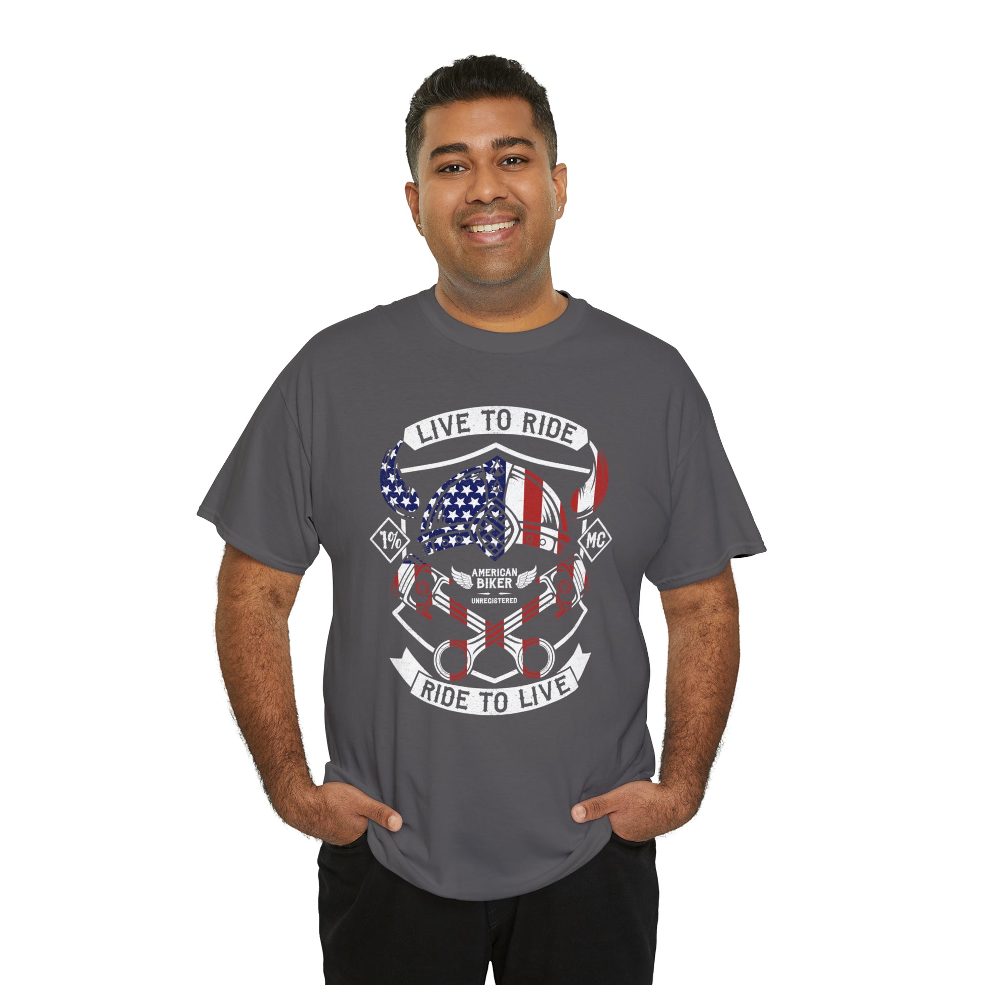 Wear this "Live to Ride, Ride to Live" American Biker tee